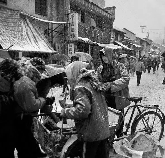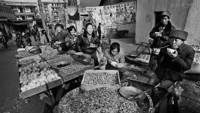 1988年冬天,梅溪橋老街上的水果小販在風雪中兜售來自南方的水果。1989年,梅溪橋老街是岳陽南雜食品的主要集散地,老街現炒的瓜子、花生,是岳陽城里人們最喜愛的零食。