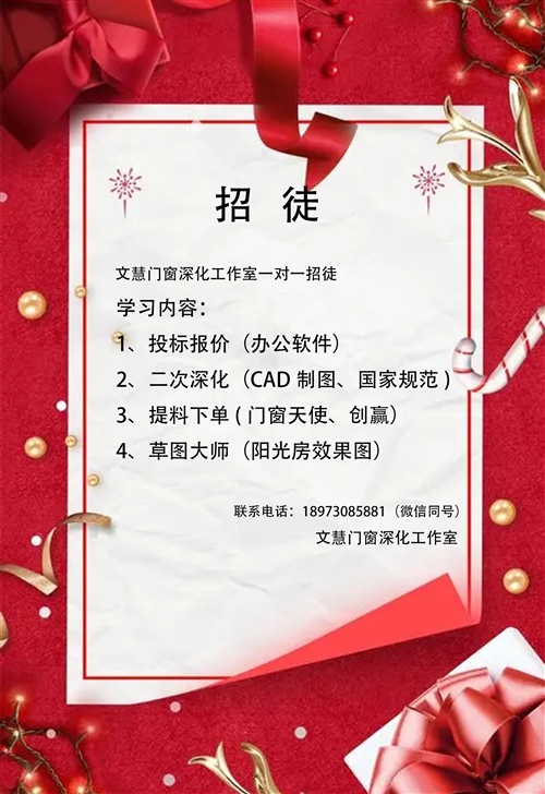 招鋁合金門窗設計學徒一名