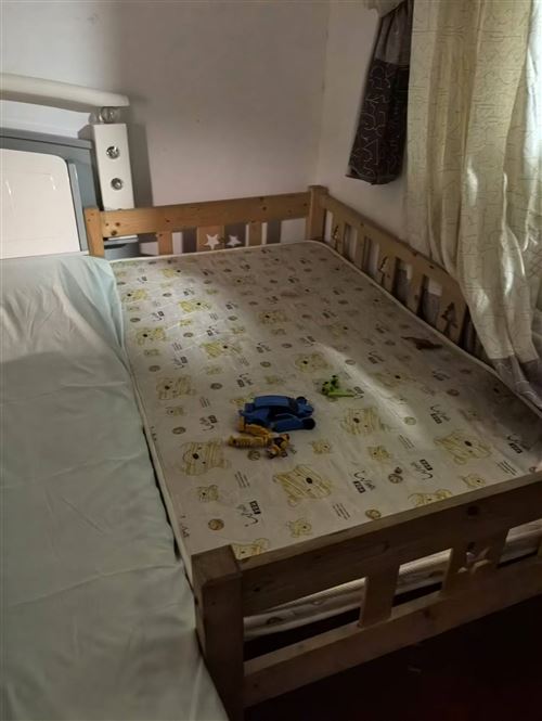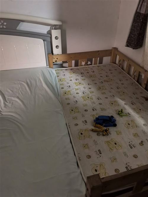 小孩小的時(shí)候買(mǎi)回來(lái)過(guò)渡和大人一起睡過(guò)了的,現(xiàn)在娃大了分床睡了,把床處理掉,寬1米,長(zhǎng)1.7米。床墊到地面距離48厘米,圍欄處到地面距離65厘米。晚上拍的,光線比較暗